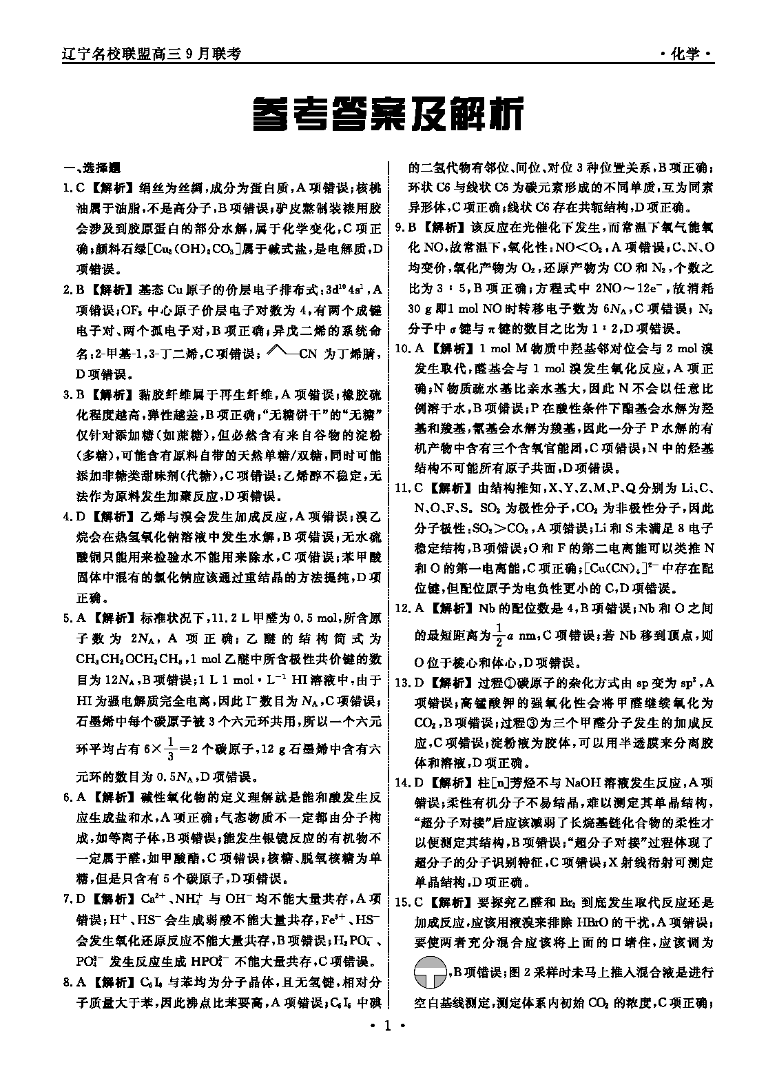 辽宁名校联盟2025年高三9月联考化学考试已于近日开考,为方便考生考后及时查看考试情况,查漏补缺、弥补不足,本文整理了试题答案解析相关信息!