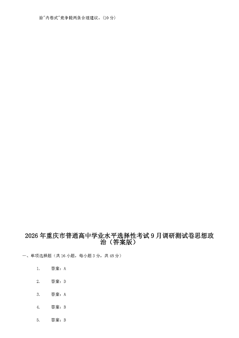 重庆康德卷2026年高三上学期9月调研政治考试已于近日开考,为方便考生考后及时查看考试情况,查漏补缺、弥补不足,本文整理了试题答案解析相关信息!