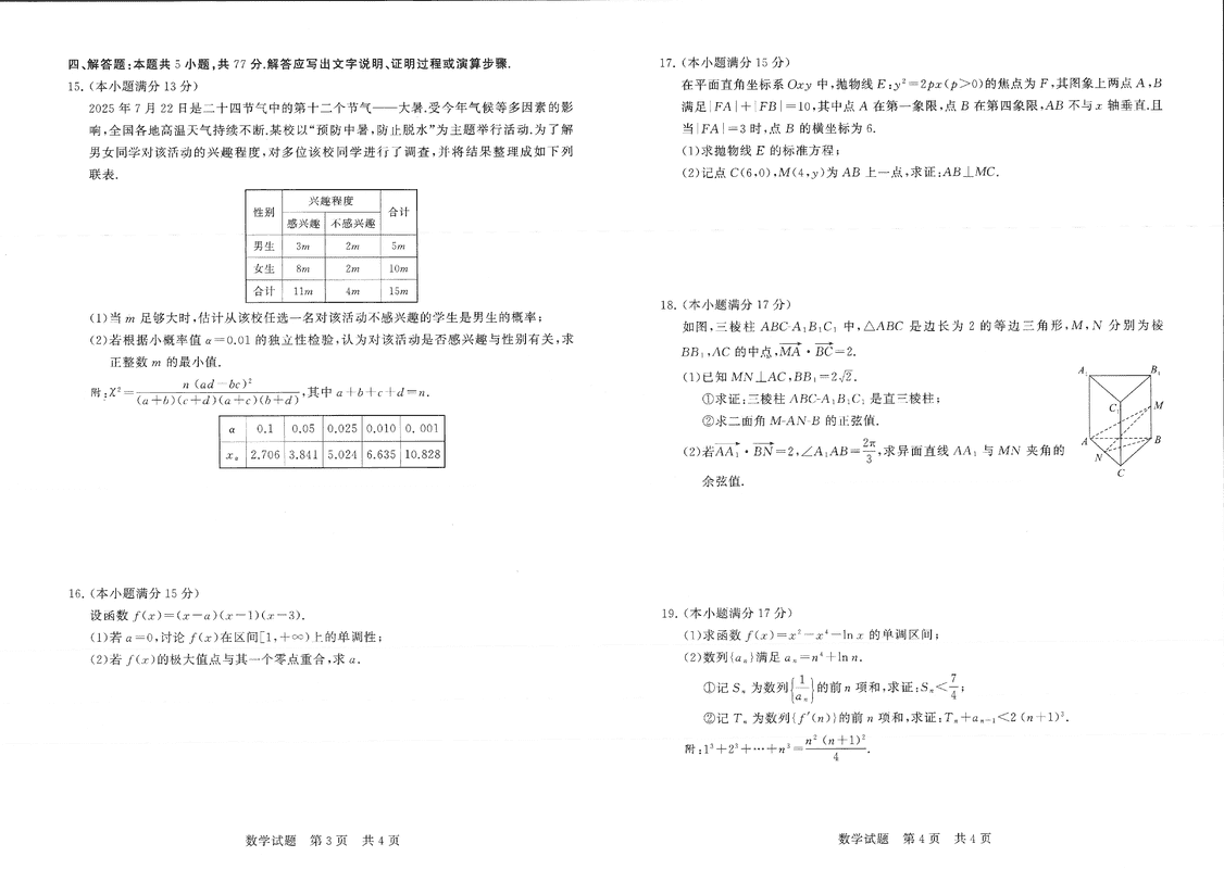 河南新未来2025-2026学年高三上9月联合测评数学试题及答案