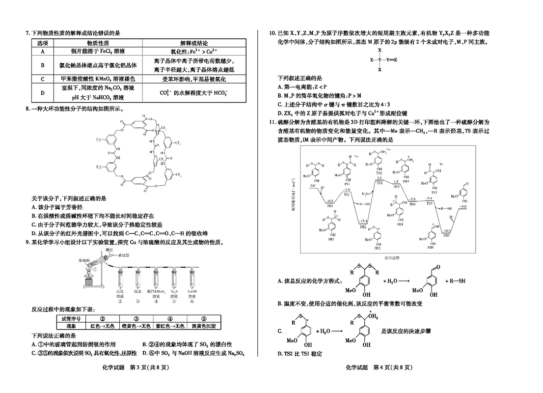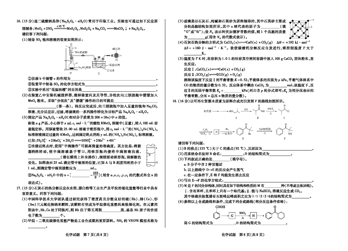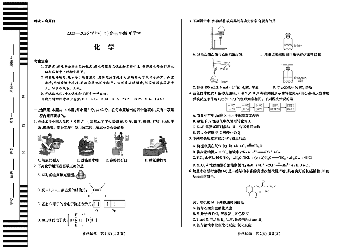 河南天一大联考2025-2026学年高三上学期开学考化学试题及答案