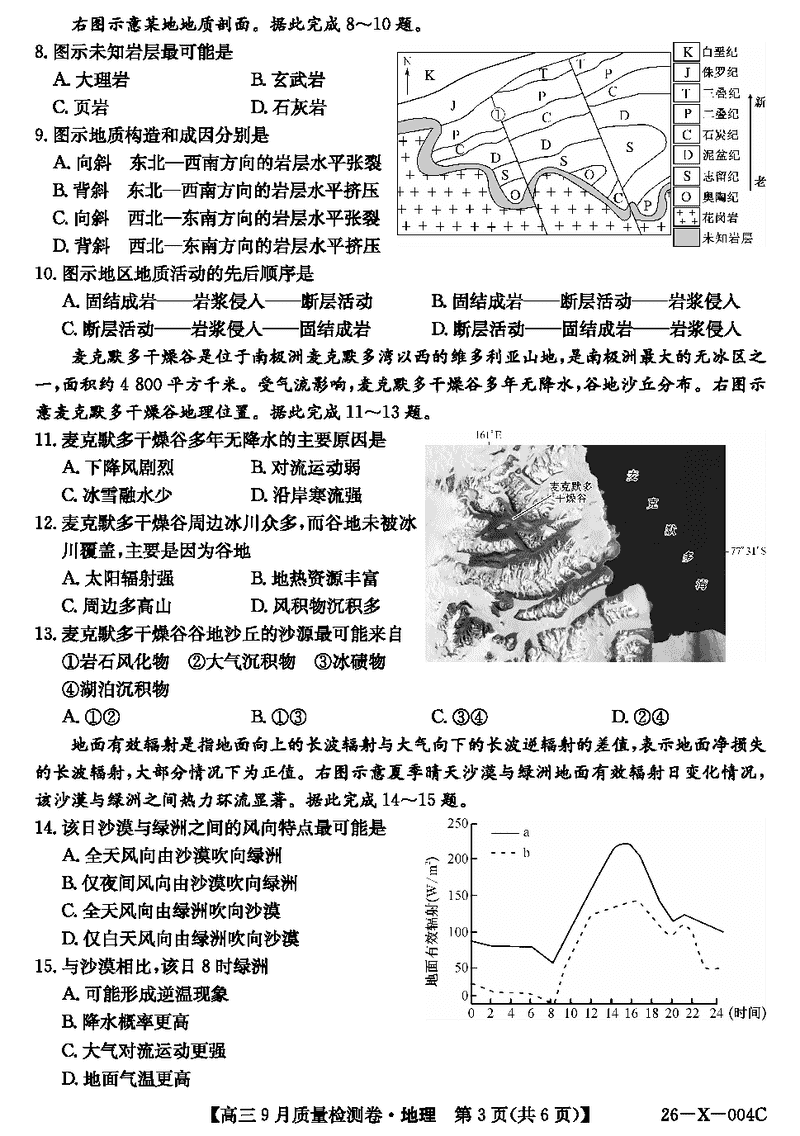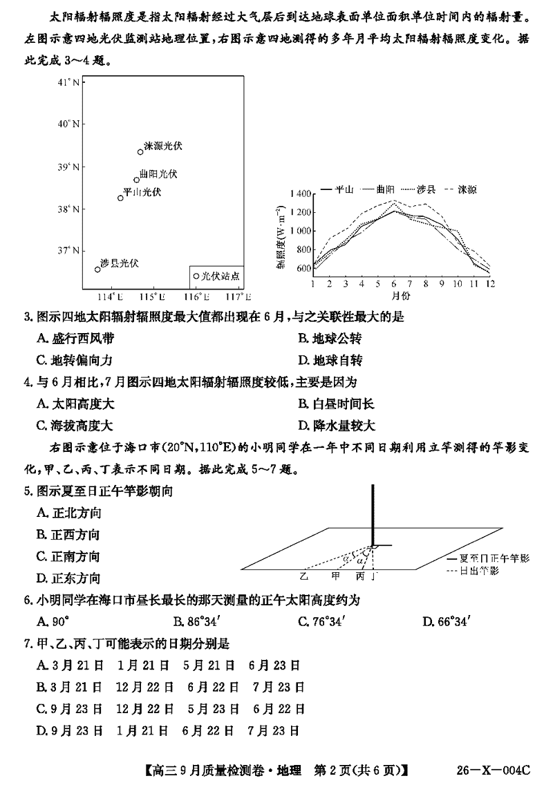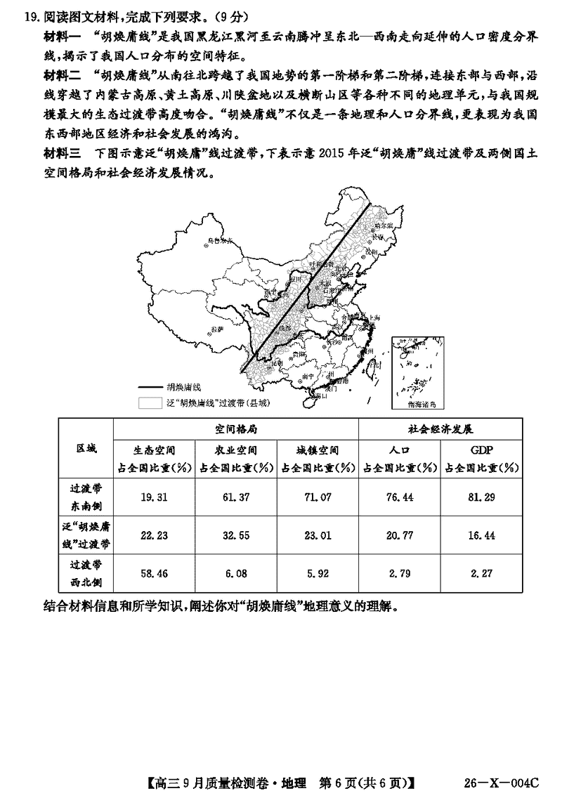山西三晋卓越联盟2025-2026学年高三9月质检地理试题及答案