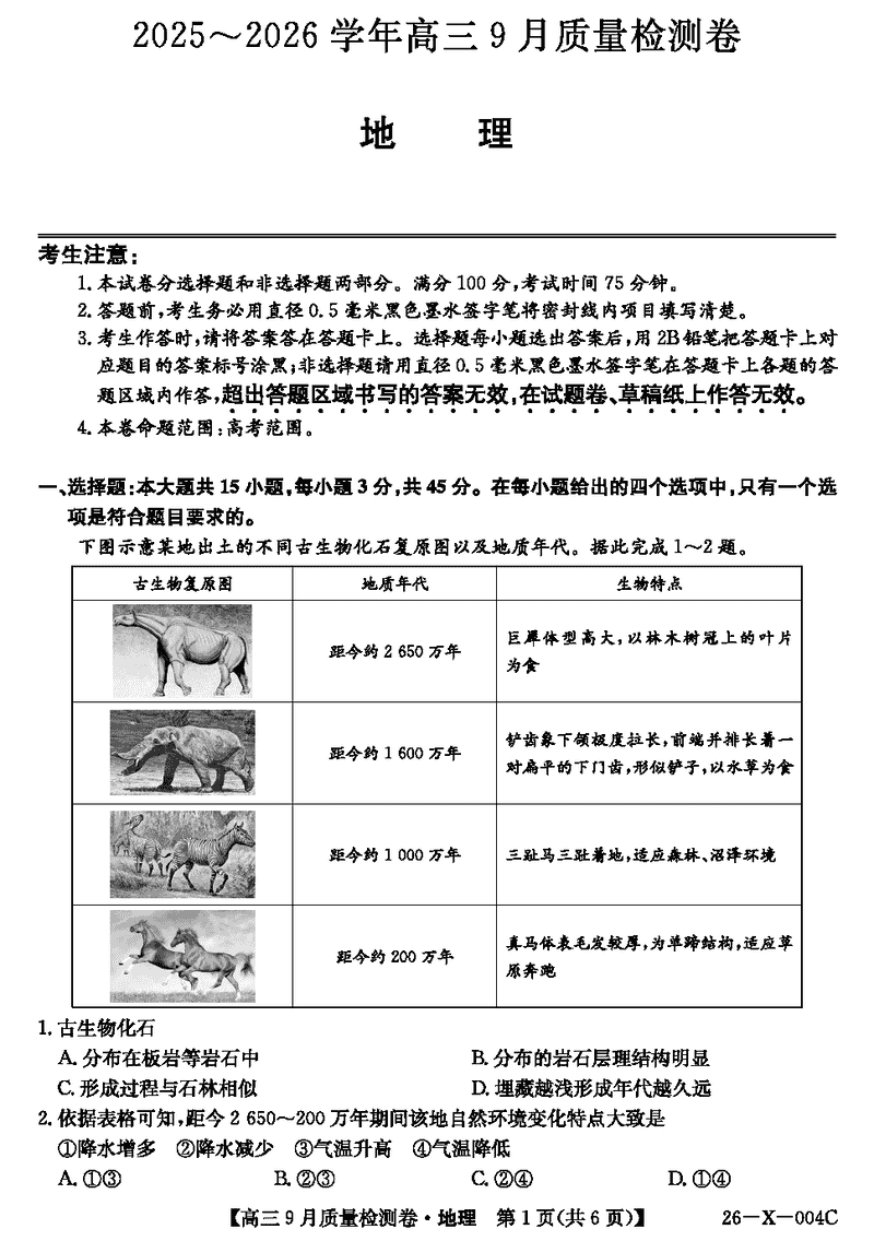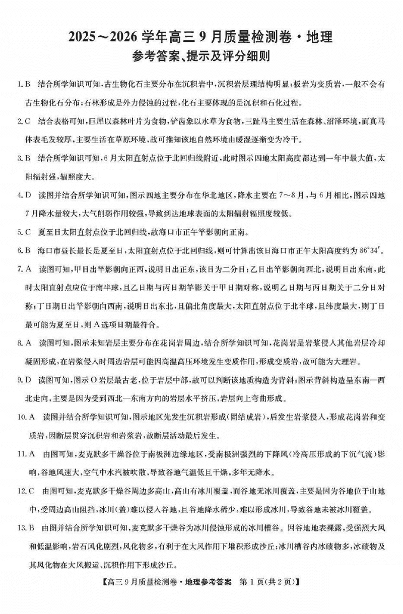 山西三晋卓越联盟2025-2026学年高三9月质检地理考试已于近日开考,为方便考生考后及时查看考试情况,查漏补缺、弥补不足,本文整理了试题答案解析相关信息!