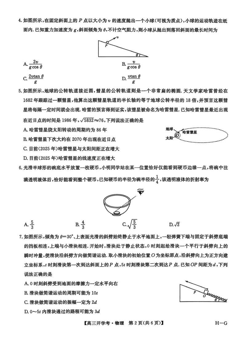 河南九师联盟2026届高三上学期9月联考物理试题及答案