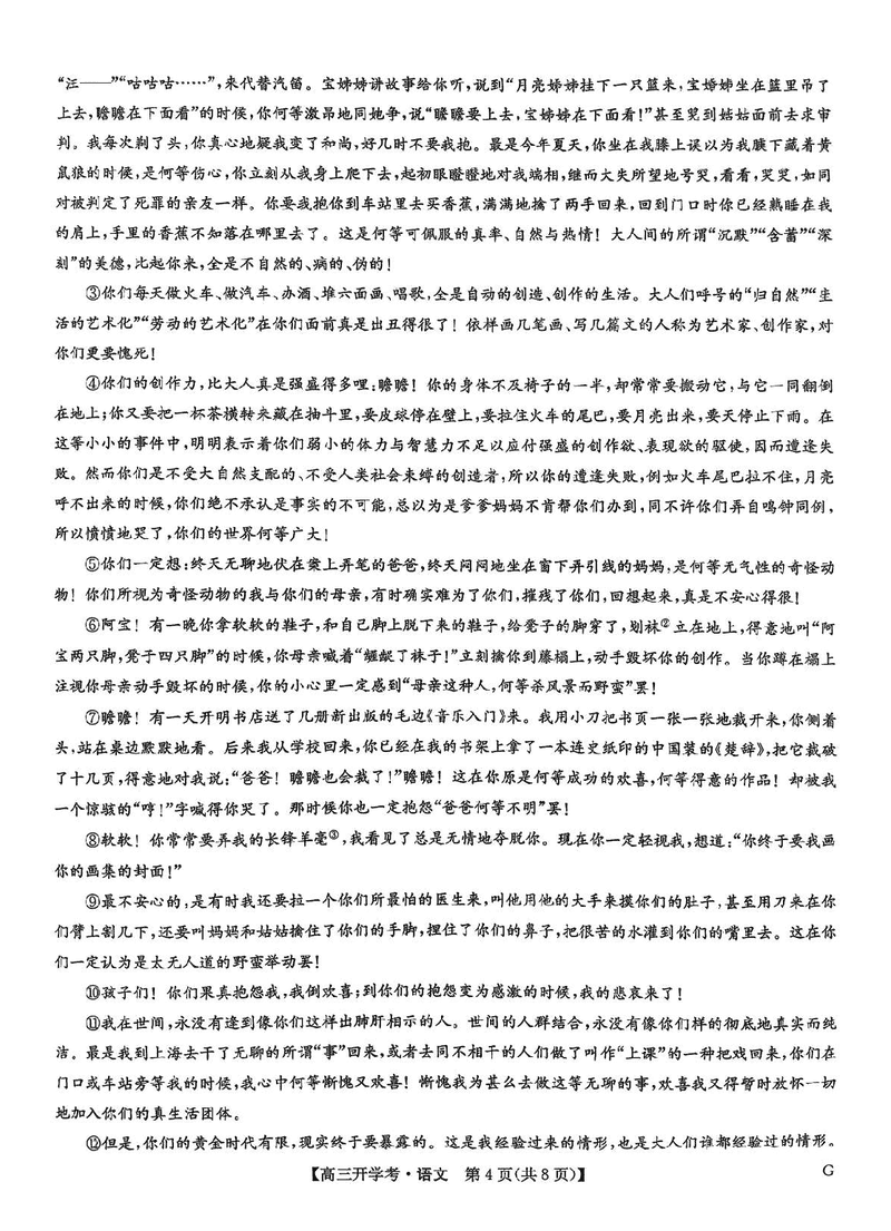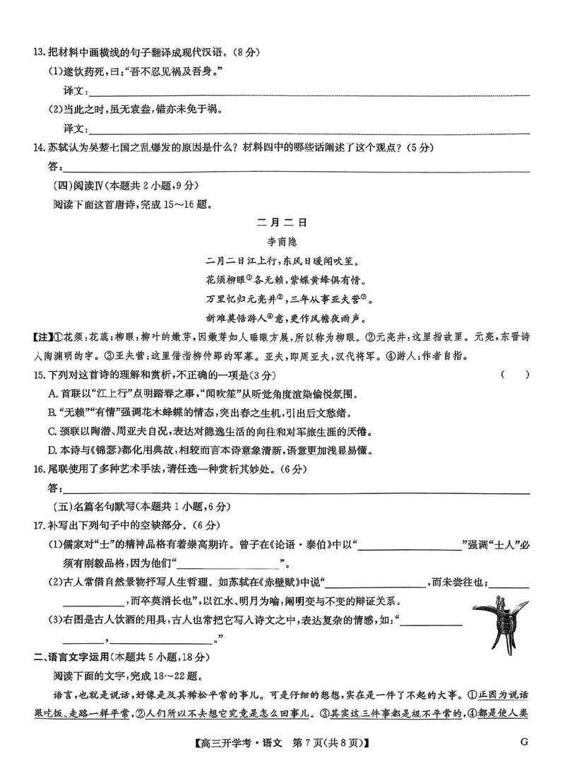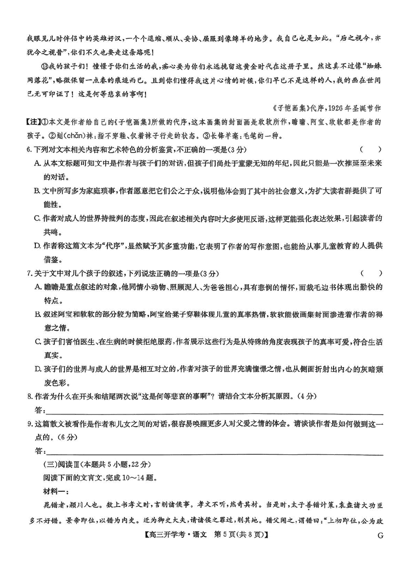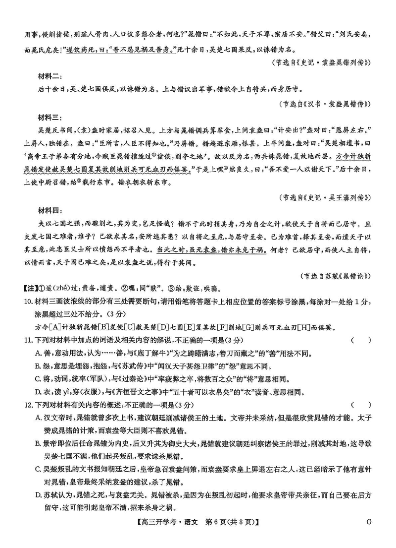 河南九师联盟2026届高三上学期9月联考语文试题及答案