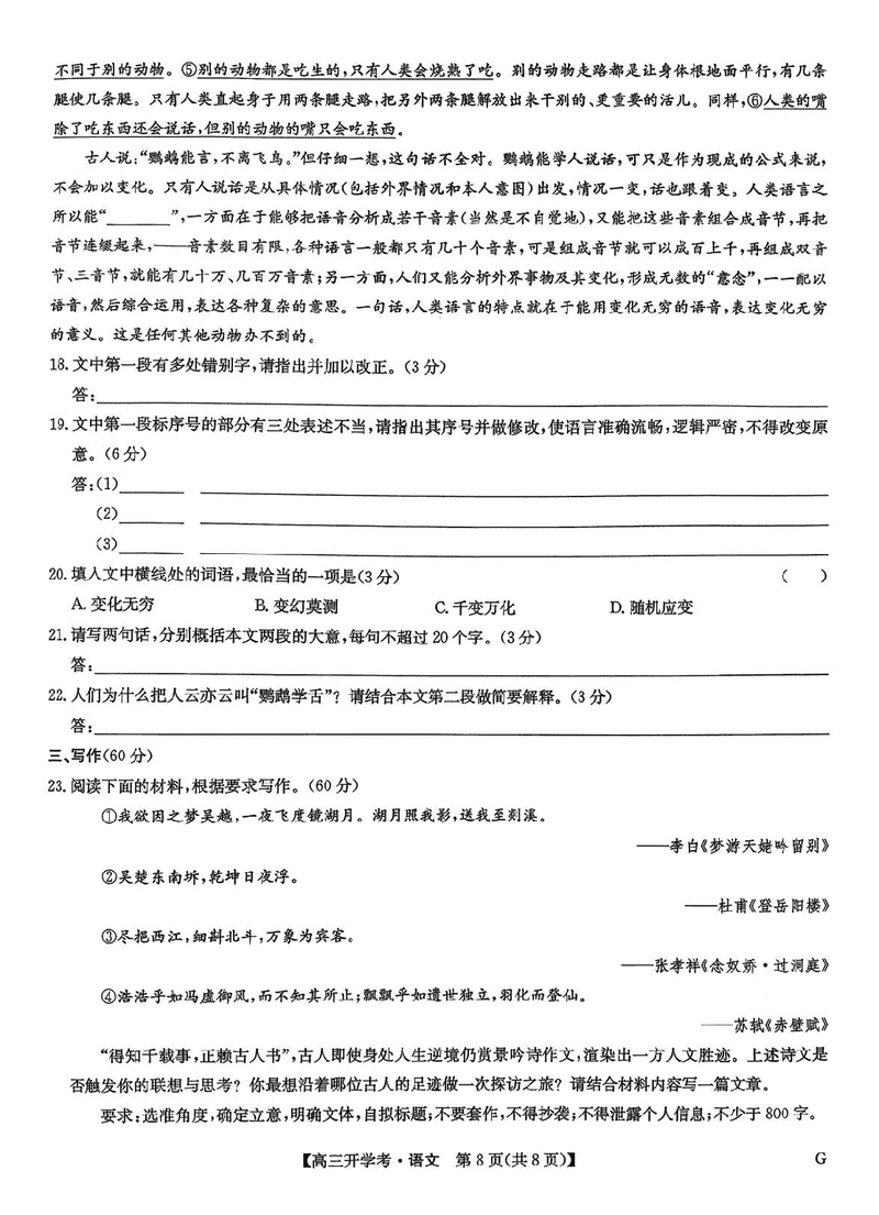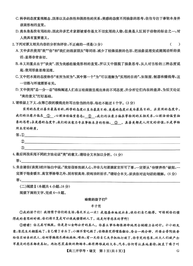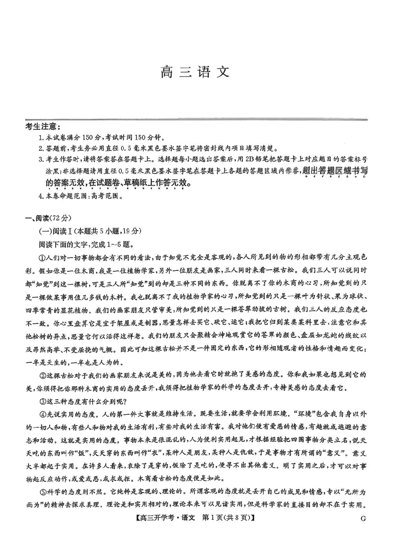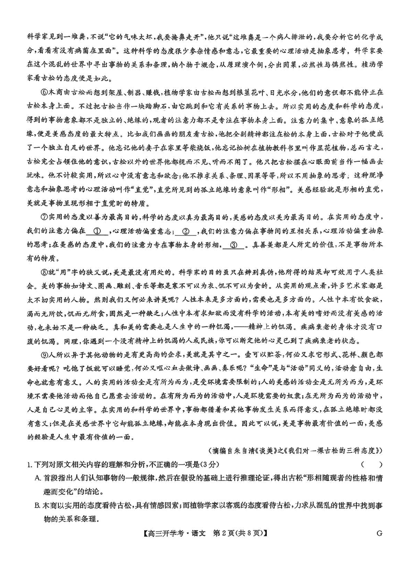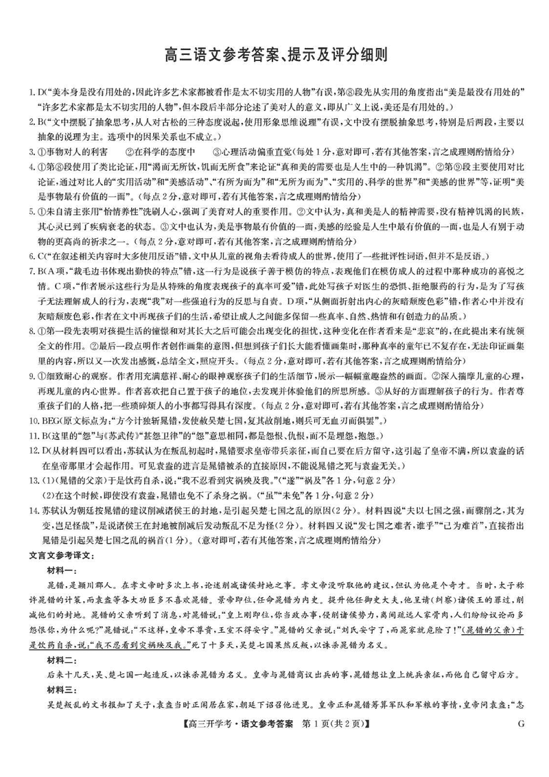河南九师联盟2026届高三上学期9月联考语文试题及答案