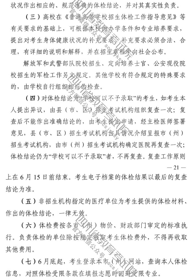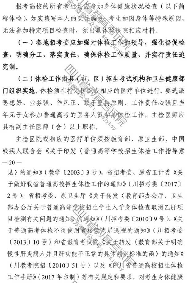 关于做好四川省2020年普通高校招生工作的通知发布,四川高考体检复查工作原则上在6月15日前结束。