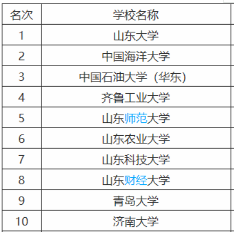 以校友会版排名为例,山东省大学排名前十的学校情况如下: