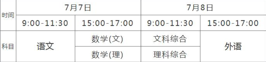 广东高考时间安排