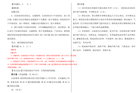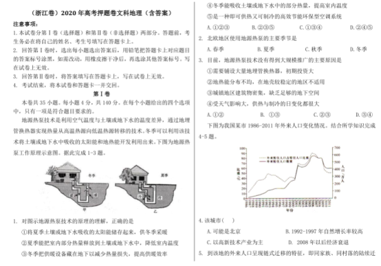 2020浙江高考地理考前冲刺押题试题【含答案】