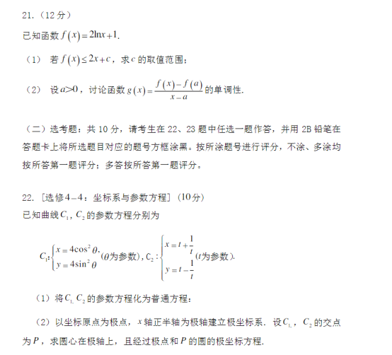 2020内蒙古高考文科数学试题【Word真题试卷】