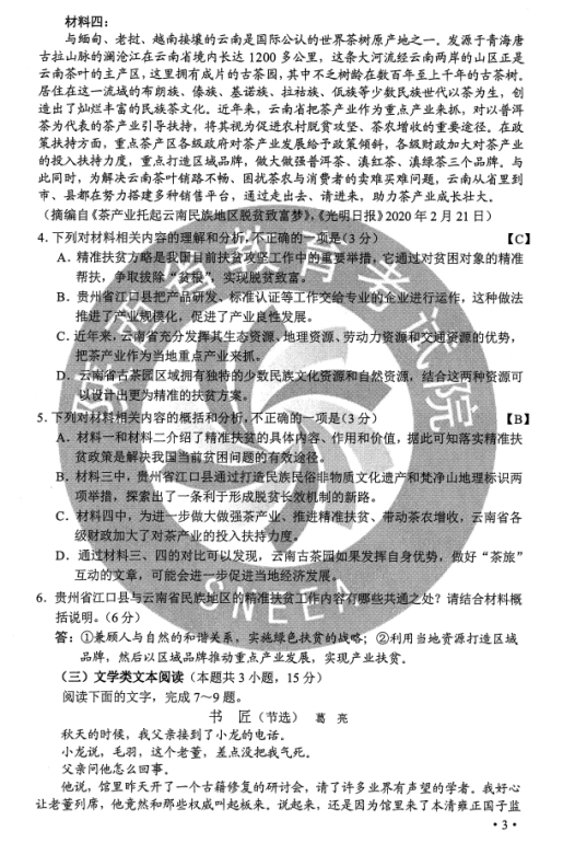 2020新疆高考语文试题及答案解析【图片版】
