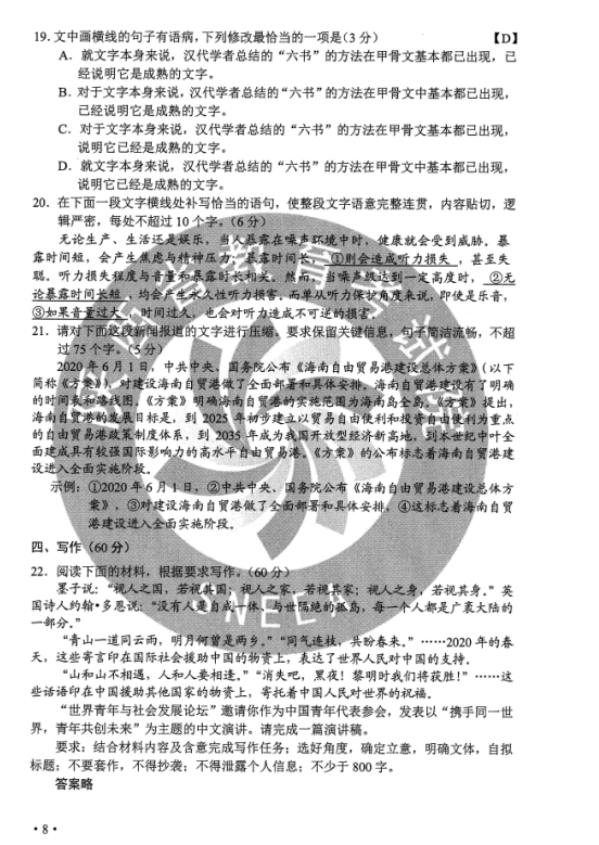 2020全国2卷高考语文试题及答案解析
