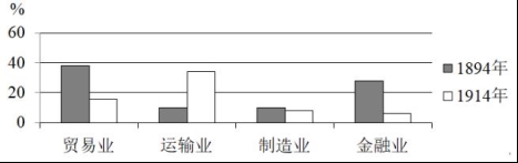28.1894~1914年,外国在华企业投资总额有所增加,各行业所占比例如图9所示。