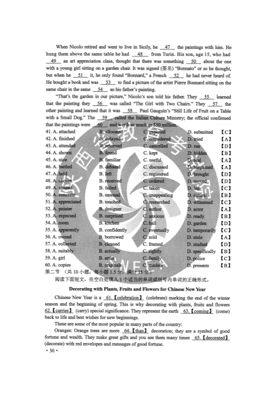 2020全国2卷高考英语试题及答案解析【word精校版】