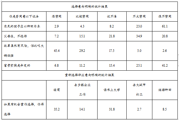 表1 1995年7~8月江苏昆山、浙江乐清部分农民调查统计 单位:%