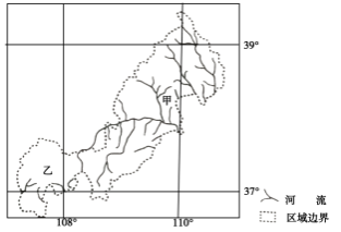 2.图示甲、乙两地区地名中“河”“沟”“湾”等出现的比例很高,表明乙