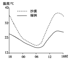 对我国甘肃某绿洲观测发现,在天气稳定的状态下,会季节性出现绿洲地表温度全天低于周边沙漠的现象。图3呈现该绿洲和附近沙漠某时段内地表温度的变化。据此完成6~8题。