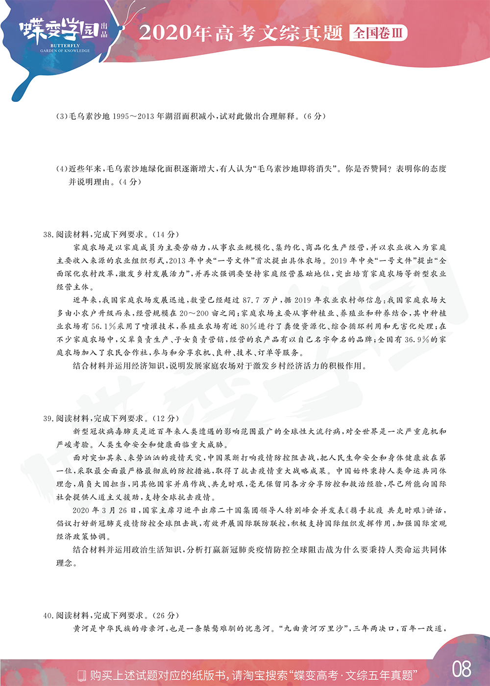 2020年全国3卷高考文综真题试卷【高清精校版】 时间:2020-07-10 11:18 文综试题 本文档整理了【高清精校版】2020年全国3卷高考文综真题。点击文末的下载,可下载PDF格式的文件,便于打印和存储。