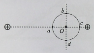 10.真空中有两个固定的带正电的点电荷,电荷量不相等。一个带负电的试探电荷置于二者连线上的O点时,仅在电场力的作用下恰好保持静止状态。过O点作两正电荷连线的垂线,以O点为圆心的圆与连线和垂线分别交于a、c和b、d,如图所示。以下说法正确的是