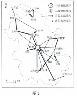 6.合肥虽为滁州的次位客运流向,但滁州发往合肥的客流量与发往南京的相差很小,其主要原因是