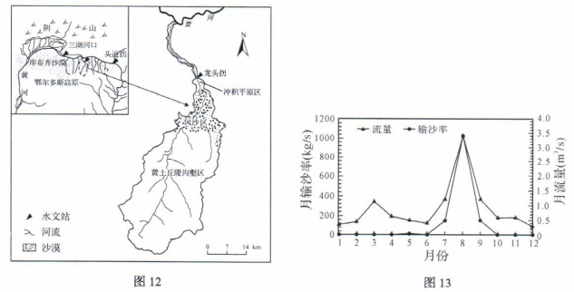 (1)冬春季节,大风将大量的沙尘吹送到河道里堆积,提供了丰富沙源;夏秋季节暴雨多发,侵蚀搬运作用强,增加了入河泥沙量;进入河道的泥沙被洪水搬运,易形成高含沙水流。