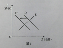 2.甲、乙、丙是三种正常品,且都富有需求弹性,其中,甲与乙是互补品,甲与丙互为替代品。图1反映的是甲商品的需求变化情况(S表示供给,D表示需求)。若不考虑其他因素,能引起甲商品的需求从D移动到D'的是
