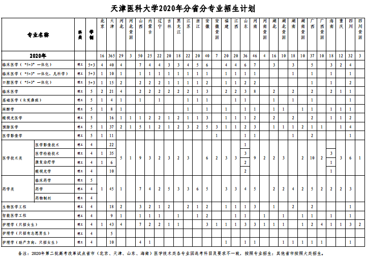 天津医科大学招生计划2020