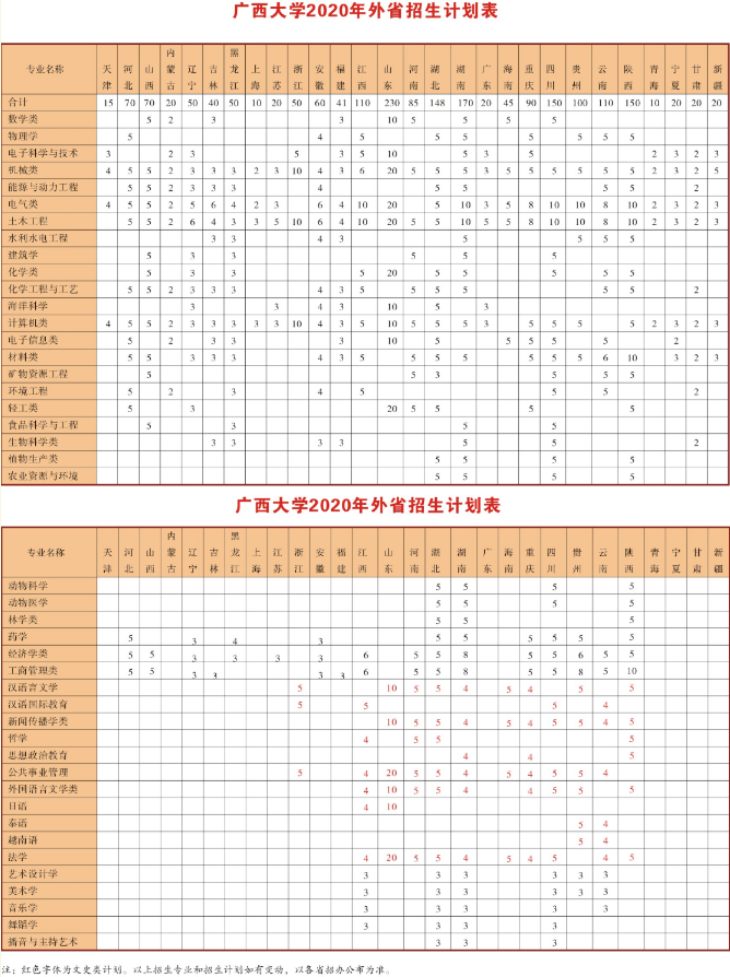 广西大学招生计划2020