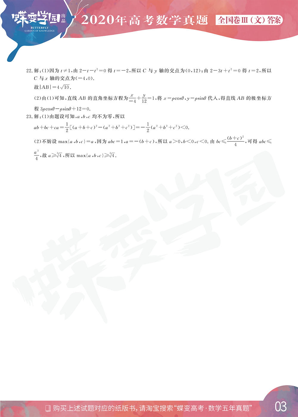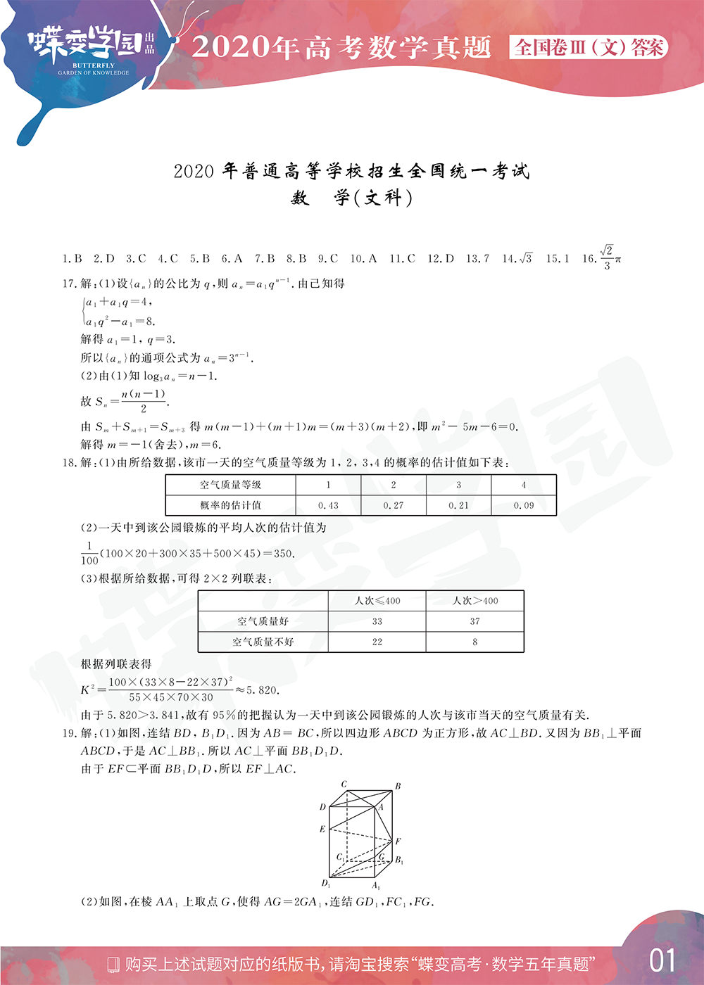 2020年全国3卷高考文科数学试题答案【高清精校版】 时间:2020-07-14 14:16 数学试题 本文档整理了【高清精校版】2020年全国3卷高考文科数学试题答案。点击文末的下载,可下载PDF格式的文件,便于打印和存储。