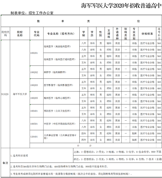 高校招生计划是考生填报志愿时的一个重要依据,下面小编整理了海军军医大学2020年的招生计划,供大家参考!
