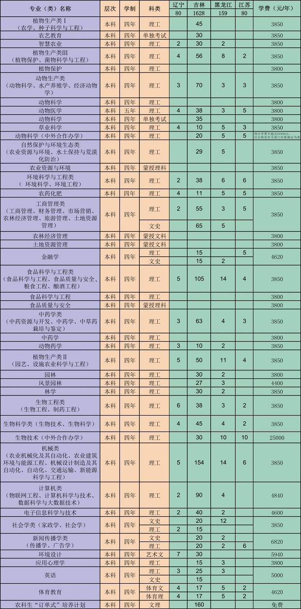 2020吉林农业大学招生计划及人数