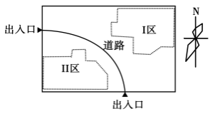 为获得冬季防风、夏季通风的效果,我国东北平原的某城市对一居住区进行了相应的建筑布局规划,规划建筑物为高层(7层以上)和多层(7层或以下)。图2示意在该居住区内规划的两个居住片区、道路、出入口及当地盛行风向。据此完成4~6题。