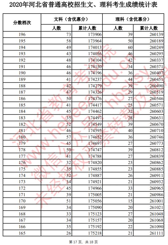 2020河北高考一分一段表 文科成绩排名 时间:2020-07-23 09:48 分数线 河北省教育考试院公布了2020年河北高考文科一分一段表,其中包含文科成绩排名,下面小编为大家详细盘点一下相关信息,供大家参考。2020河北高考文科一分一段表