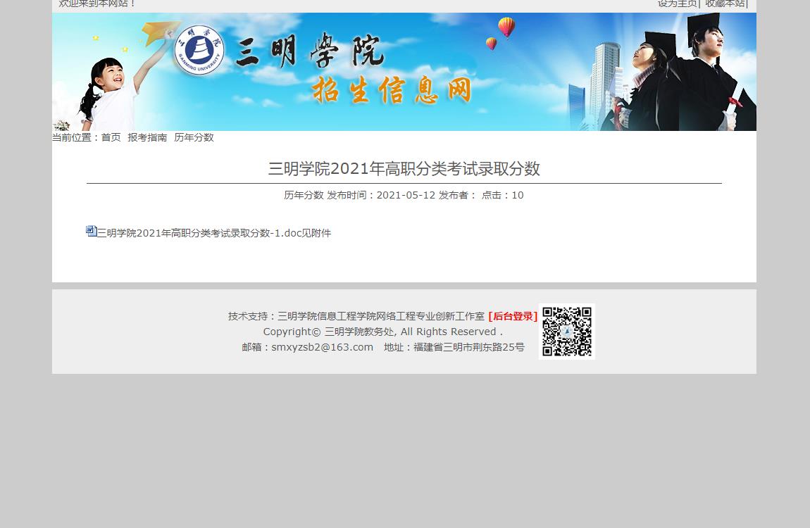 21-05-18三明学院2021年高职分类考试录取分数
