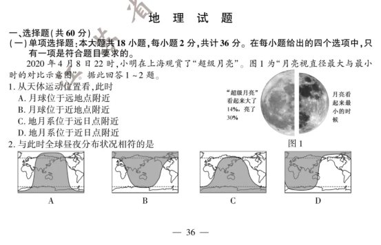 2020江苏高考地理试题及答案解析