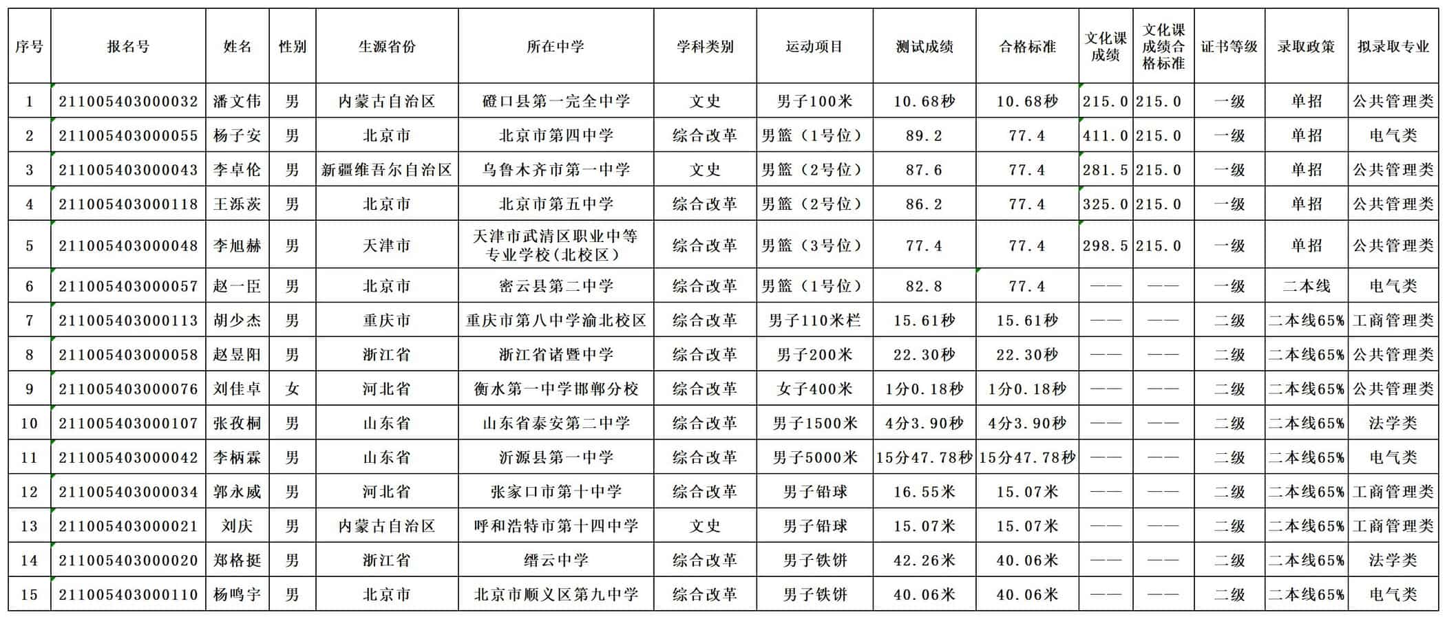 21-05-17北京林业大学2021年高水平运动队(田径)合格名单公示