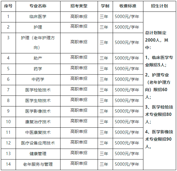 21-02-27萍乡卫生职业学院2021年单招招生专业
