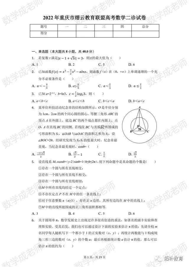 24-03-182022年重庆新高考缙云教育联盟高考数学二诊试卷及答案解析