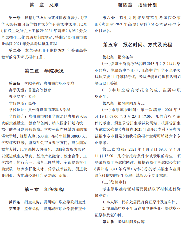 21-03-03贵州城市职业学院2021年分类考试招生章程