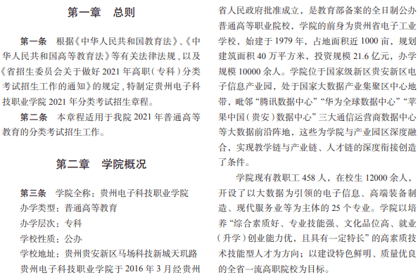 2021贵州电子科技职业学院分类考试招生章程
