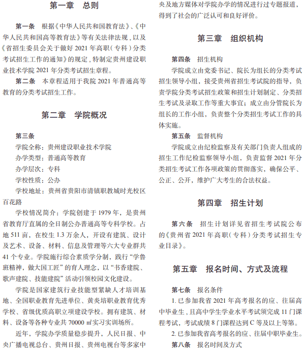 21-03-042021贵州建设职业技术学院分类考试招生章程