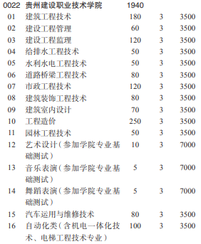 21-03-22贵州建设职业技术学院2021分类考试专业及计划