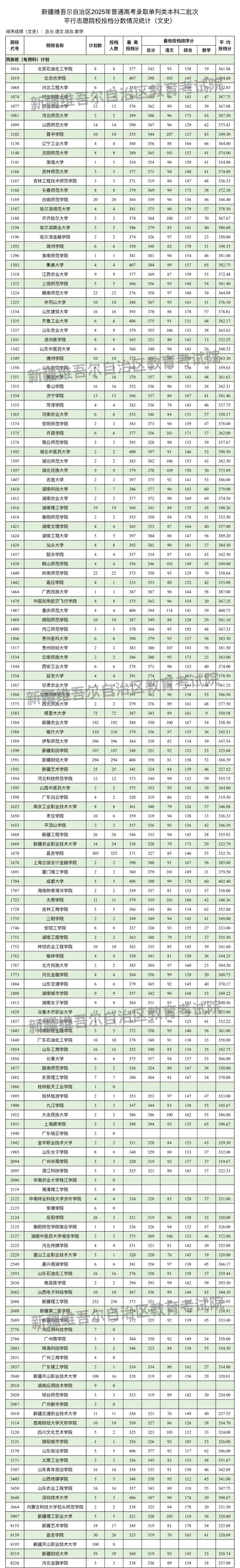 新疆维吾尔自治区2025年普通高校招生单列类本科二批次投档情况