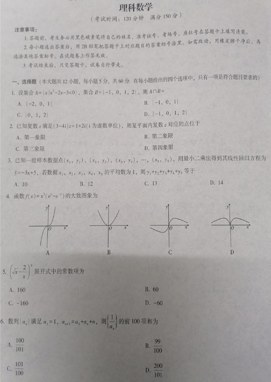 20-07-042020河南高考理科数学模拟卷(含答案)